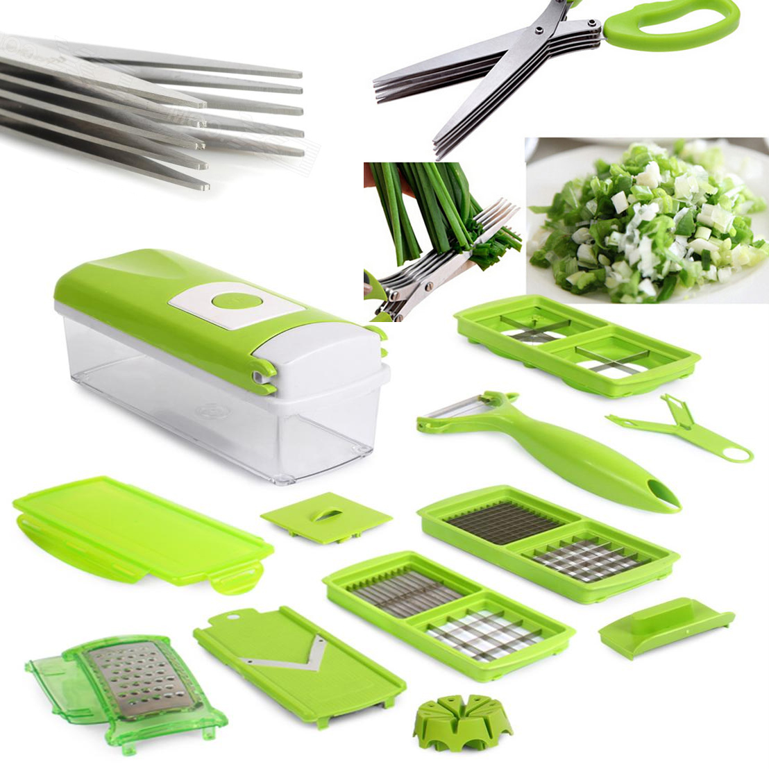 10 Pieces Nicer Dicer 9 Cutters 1 Container High Quality Imported 5 Layer Scissor For Vegetable Cutting